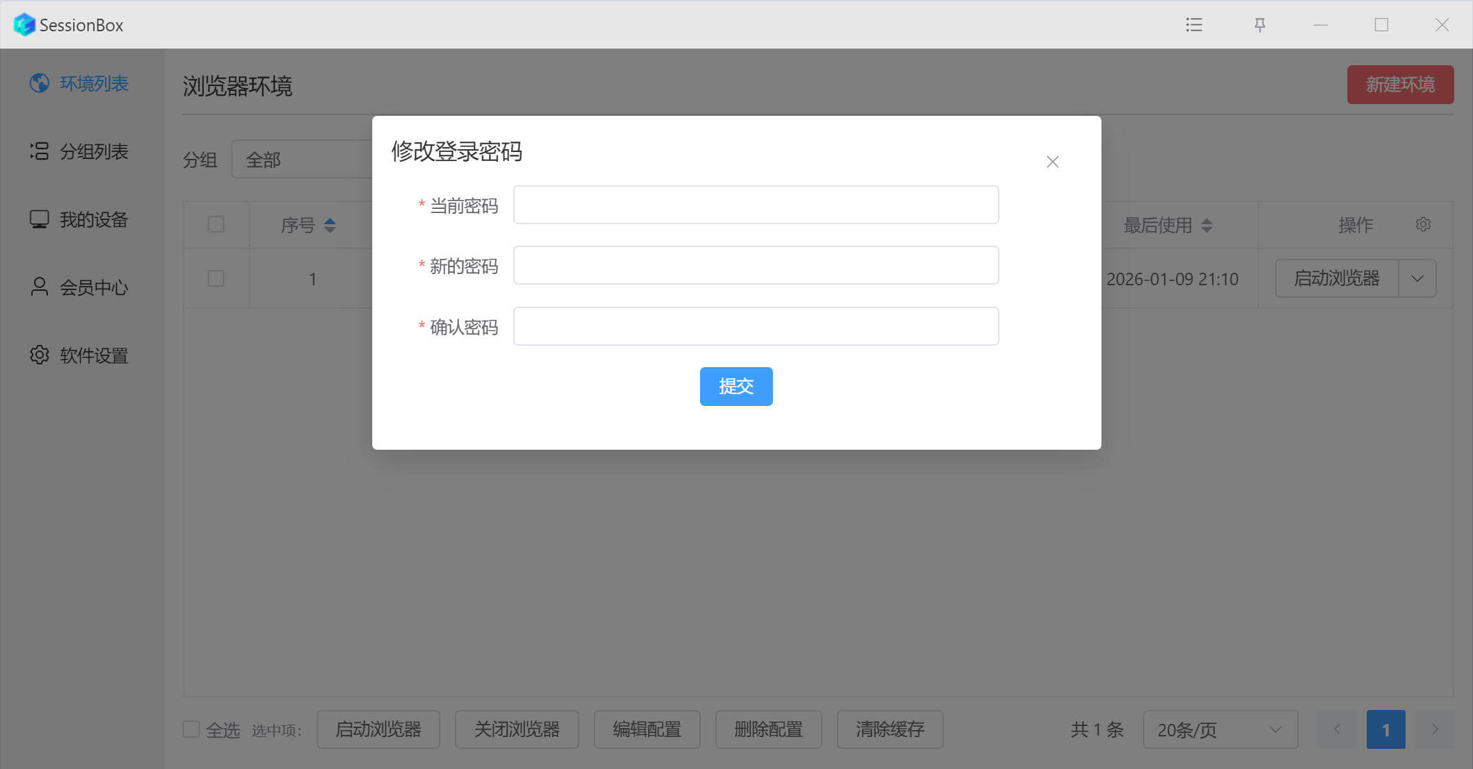 如下图,先输入当前登录密码,设置新的登录密码,点击“提交”按钮,即可完成密码修改操作。