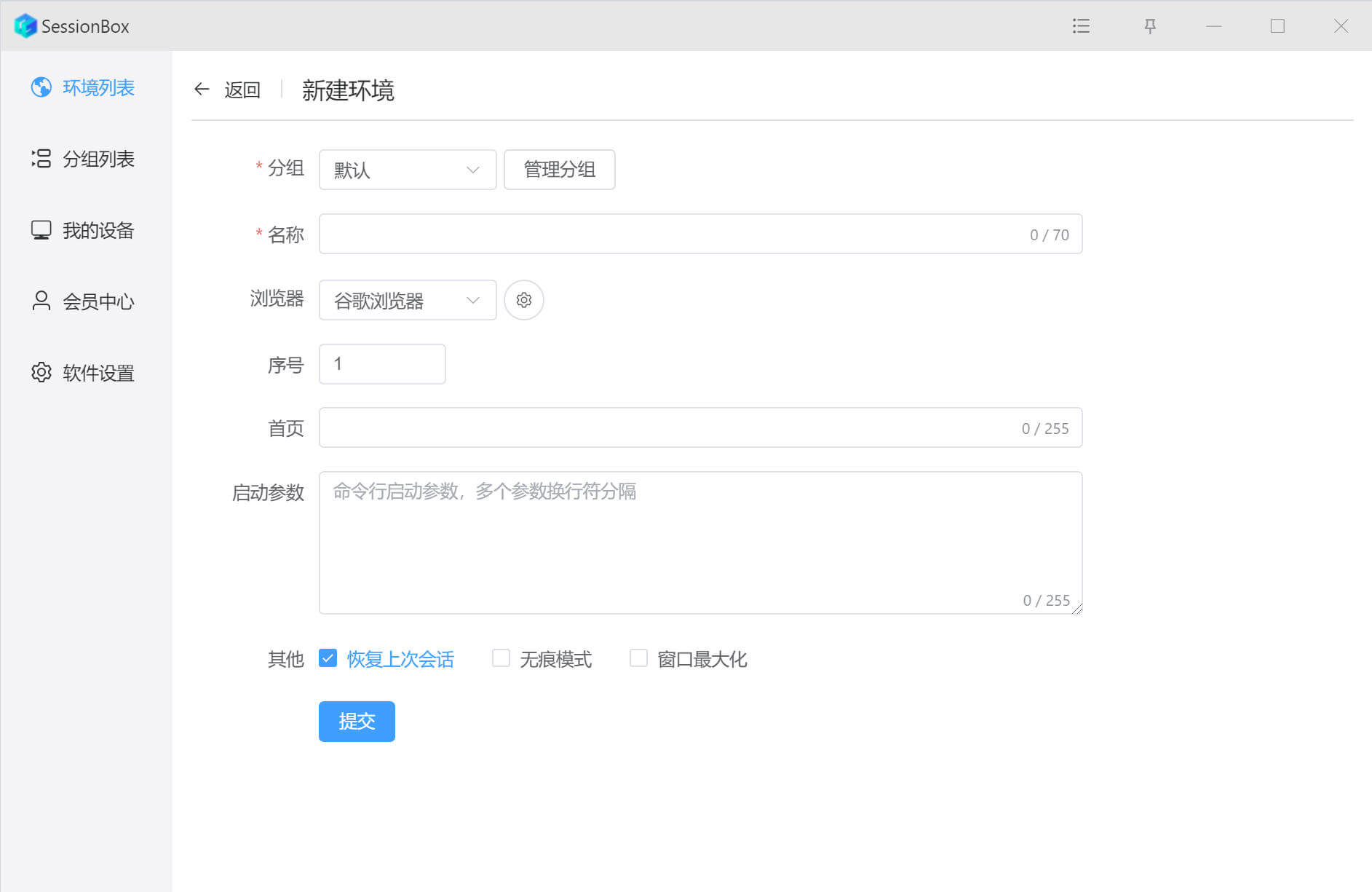 - 分组:选择所属的分组。你可以对浏览器环境进行分组管理。